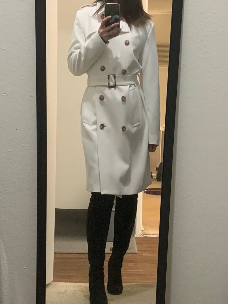 It’s “casual Friday” at work but I just bought this peacoat and I haven’t worn it yet. I also like wearing boots so thigh high heel boots + classy peacoat = the perfect work outfit.